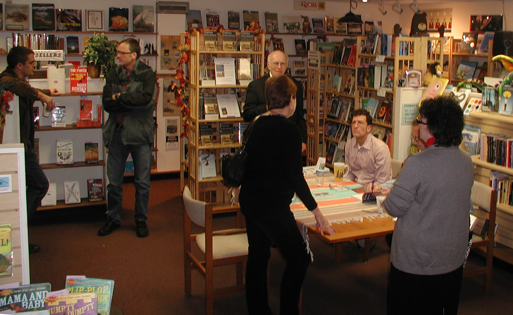 The authors discuss their book with attendees of the signing.